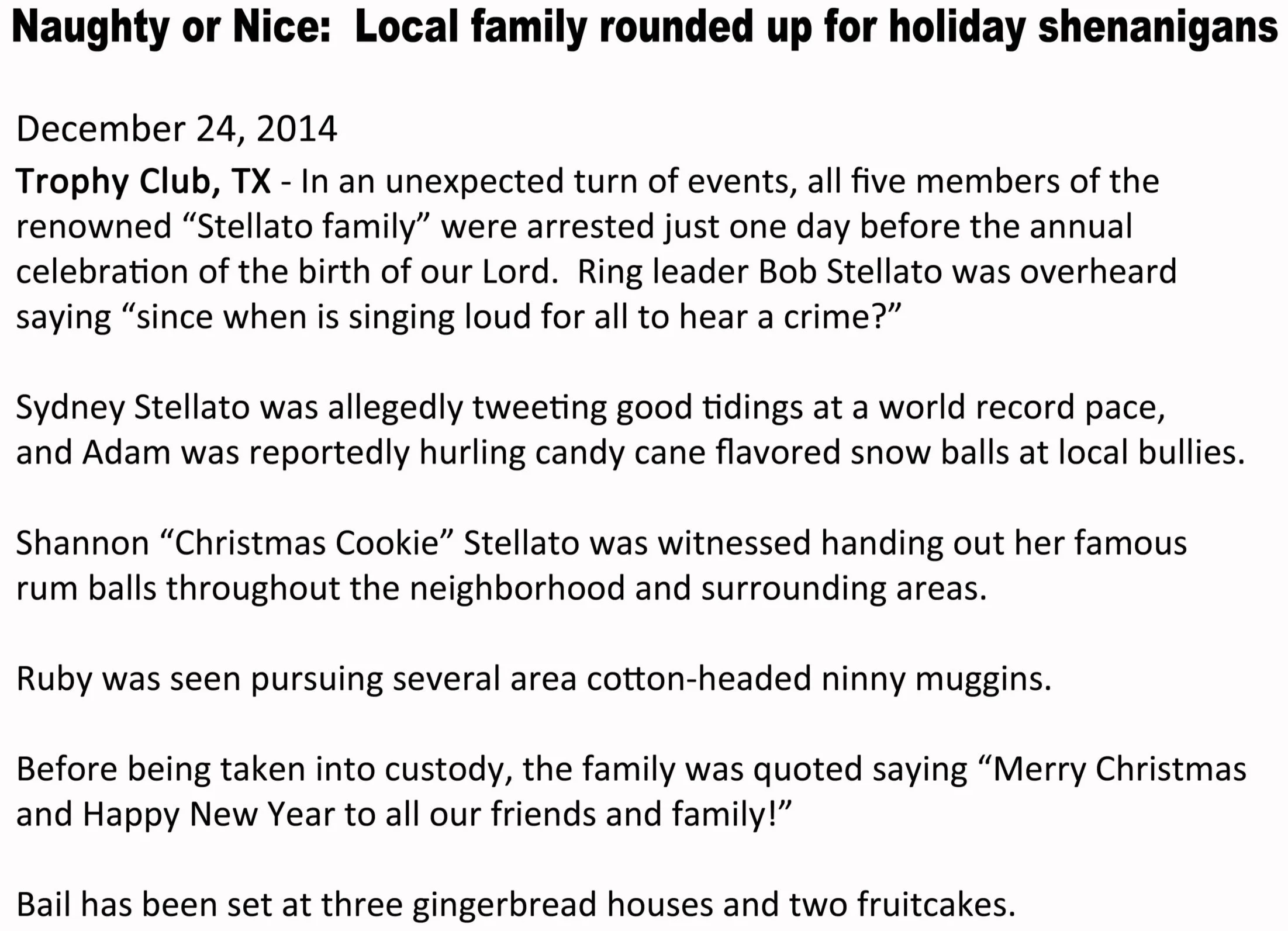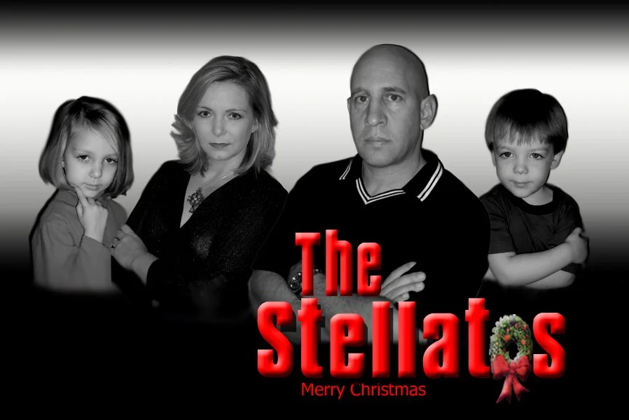 Many of the Christmas Card ideas were inspired by pop culture. In the early 2000s, the HBO show “The Sopranos” was starting to become popular, and with an Italian last name like Stellato, “fuhgeddaboudit”…it just felt right.