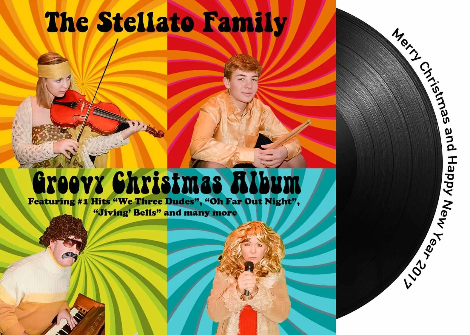 The idea of our family as a campy Christmas singing group had been on our list of ideas for long time and after coming across an old collection of record albums from the 70’s, it was a sign that 2017 was the year to go vinyl…you dig?