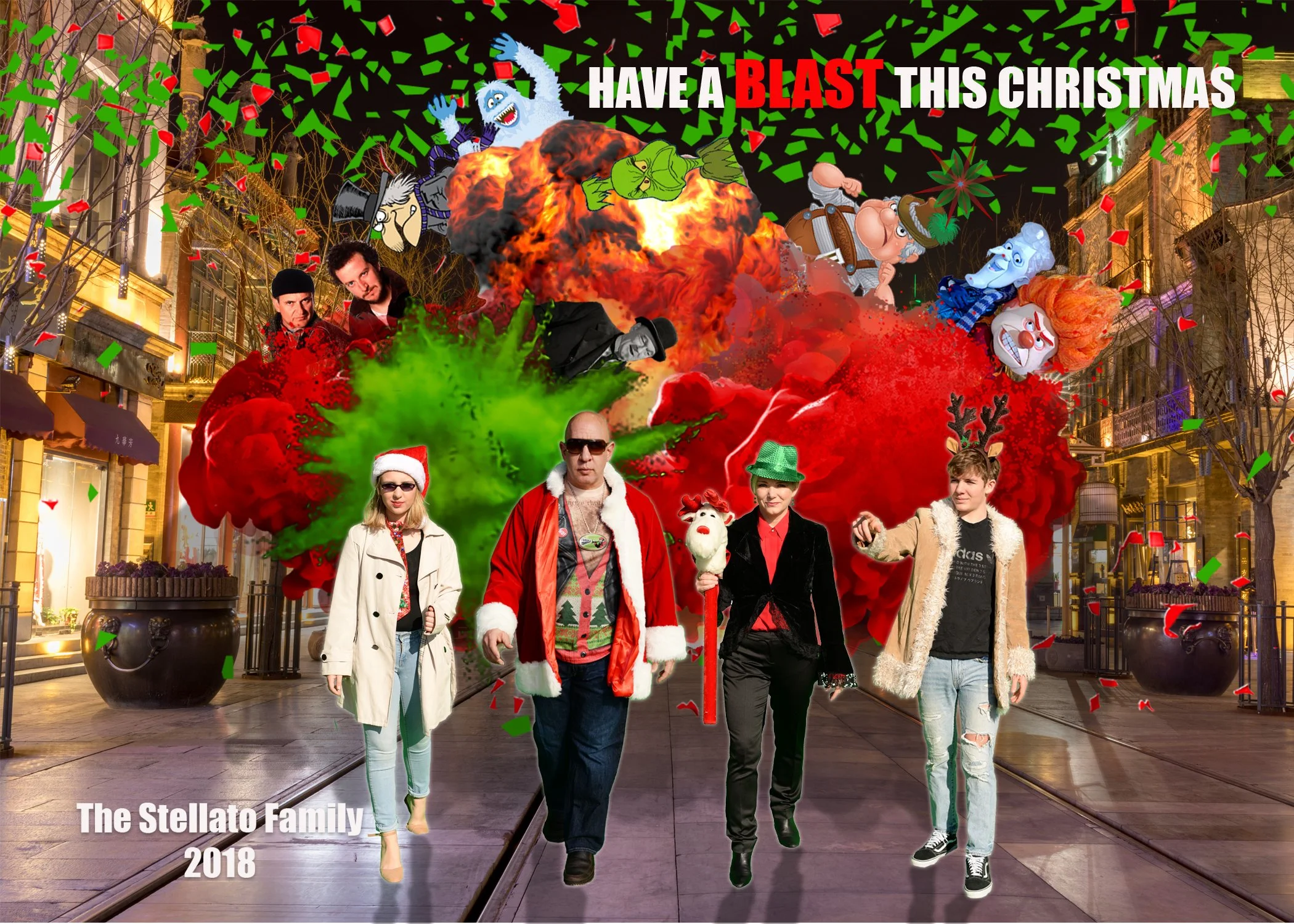 We wanted to create the classic movie scene of the slow motion walk away with things exploding behind us while we don’t react to it. So when you look at this one, imagine us in slow motion, walking towards you with your favorite walk-away-from-an-explosion music in your head. As you can tell from the carnage, we were able to destroy many of the worst Christmas villains. You’re welcome America!